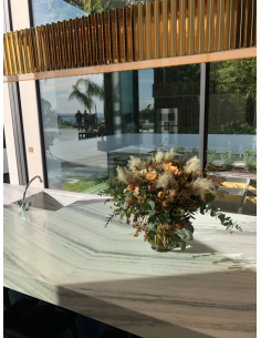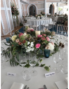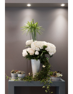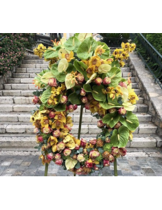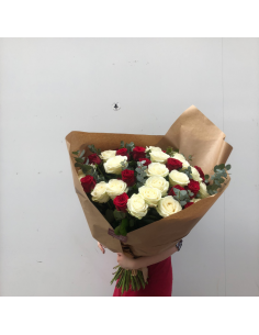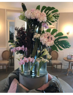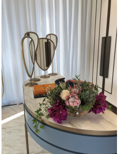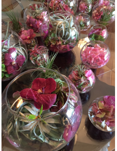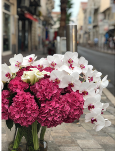 Coeur de fleurs avec roses et orchidées blanches